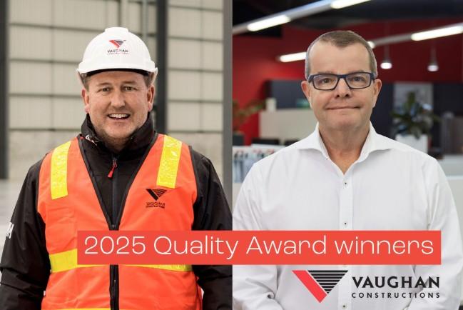 In celebration of World Quality Week (WQW) last week, Vaughan Constructions presented Quality Awards to two team members who have been true quality champions, consistently keeping quality and safety at the forefront of everything they do. This year’s Quality Award recipients were Site Manager Scott Dow in Victoria and Pre-Construction Manager David Upton in New South Wales.
