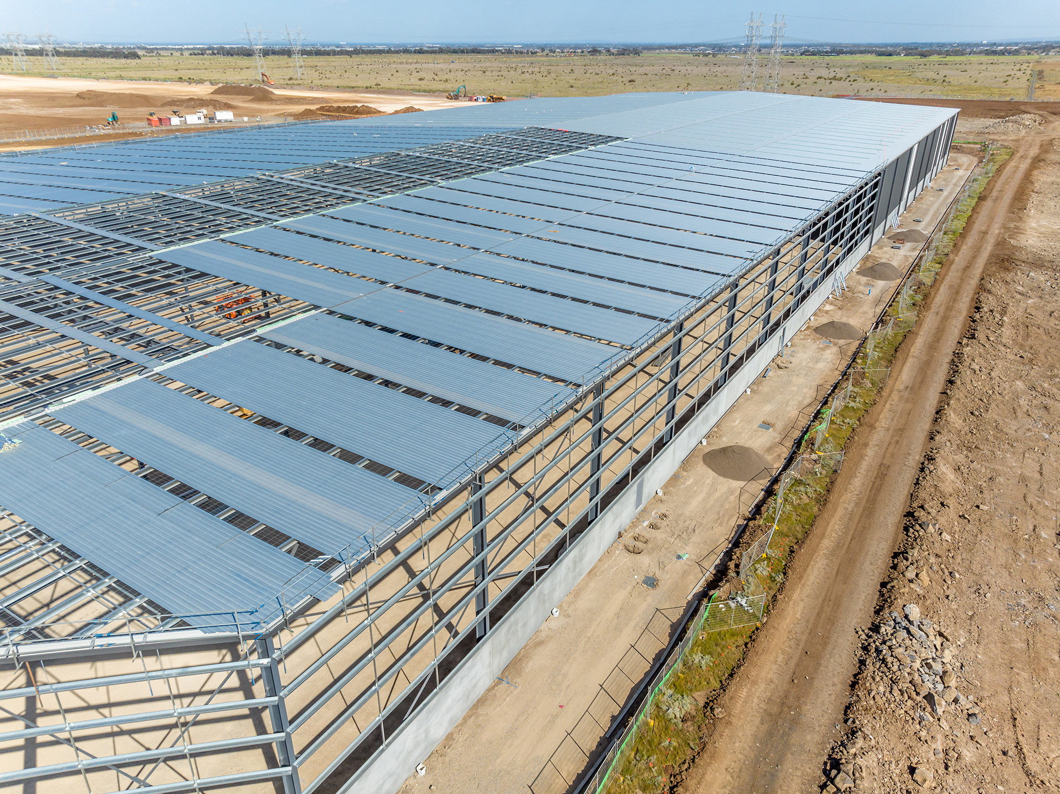 Construction is moving swiftly with three-quarters of the warehouse roof installed and inground services such as electricity, water, sewerage, stormwater, and sprinkler tank works installed.