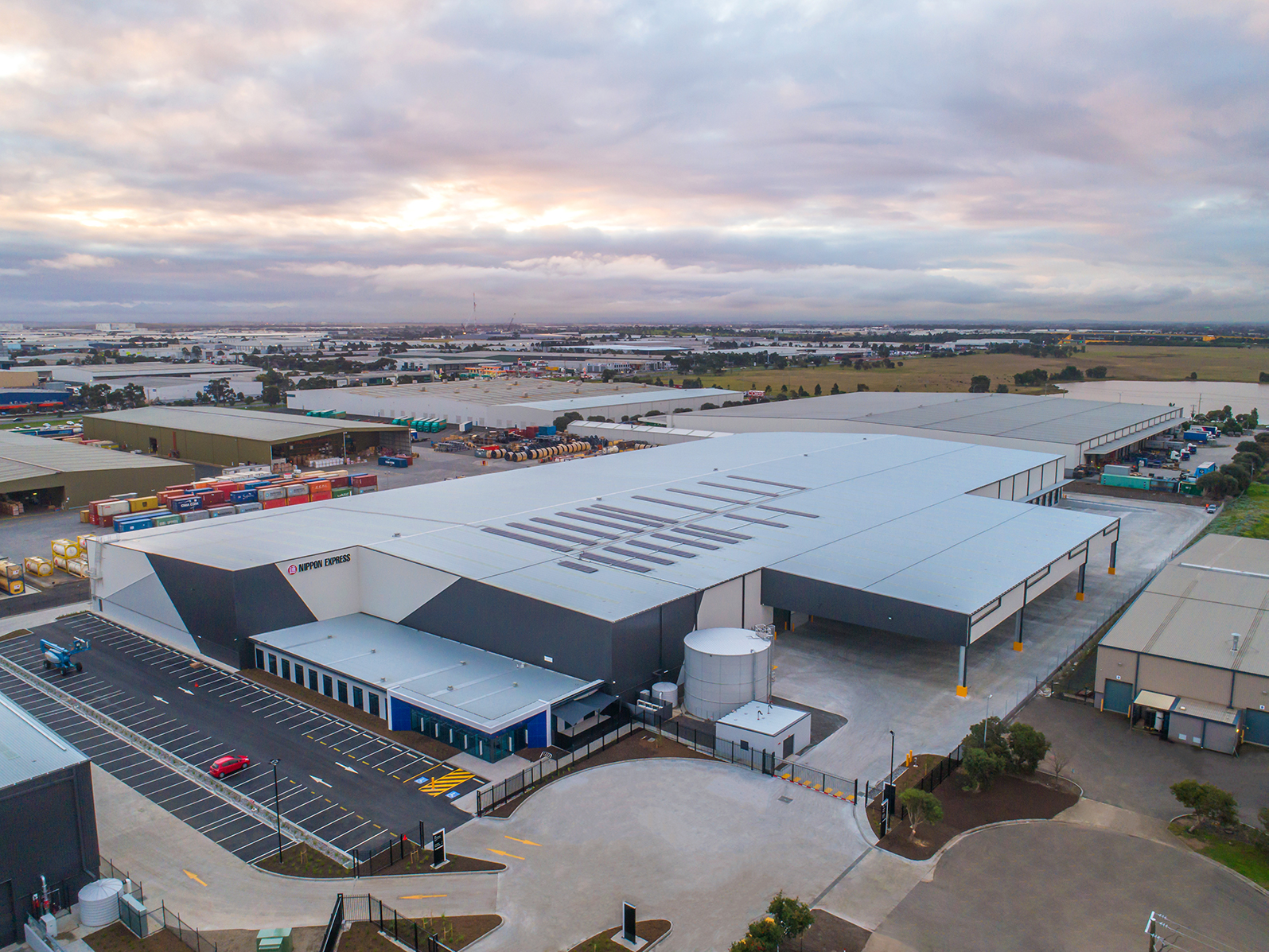 The new purpose-built distribution centre consolidates Nippon Express’ sites at Tullamarine and Truganina allowing for future growth, boasting 18,000m² of warehousing, 1,000m² of office space and a 2,300m² super canopy.