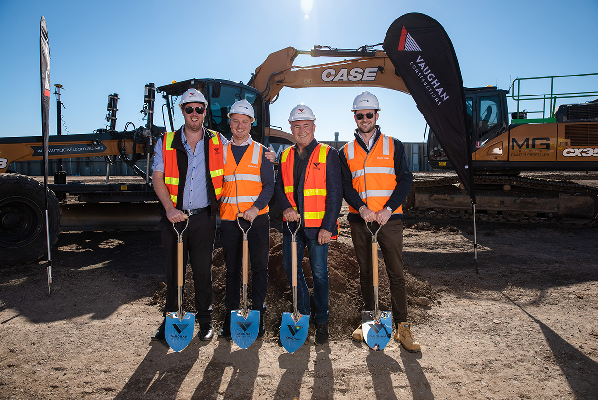 Pictured left to right: Vaughan Constructions Project Manager Matthew Thurlow, Charter Hall Industrial & Logistics Delivery Manager Stephen Salvaggio, Vaughan Constructions General Manager Mark Cormack and Charter Hall Industrial & Logistics Development Manager Theodore Berney.