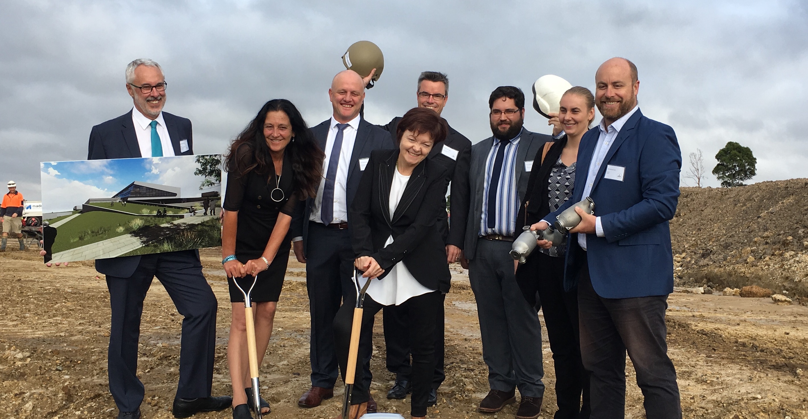 In a special presentation by Professor Jane den Hollander AO, the Vice - Chancellor turned the sod to mark the start of construction on the new high tech manufacturing hub.