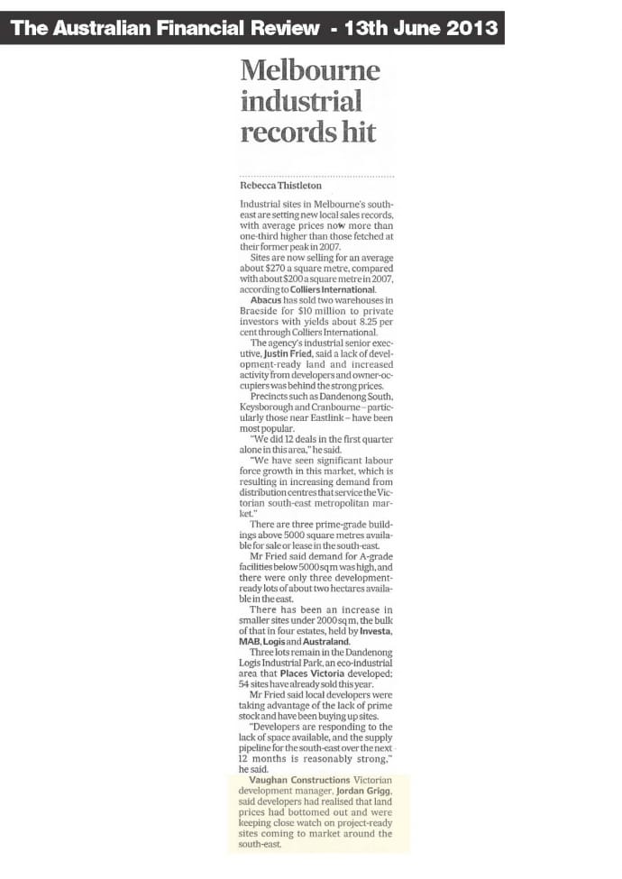 Industrial sites in Melbourne's south-east are setting new local sales records, with average prices now more than one-third higher than those fetched at their former peak in 2007.