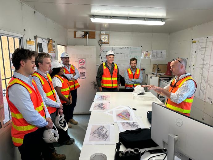 This week, members of our Graduate Program visited our Moorabbin project for a guided site tour for a new warmfill beverage facility— gaining firsthand insight into how complex builds come to life and how every team across the business plays a role in delivery. The facility features cutting-edge high-speed Nitro-Warmfill equipment from leading German manufacturer Krones. Our team received a presentation by Senior Project Manager, Nigel Worne, who demonstrated what it takes to coordinate the integration engineering between base building structures and the German process equipment through use of our BIM model.