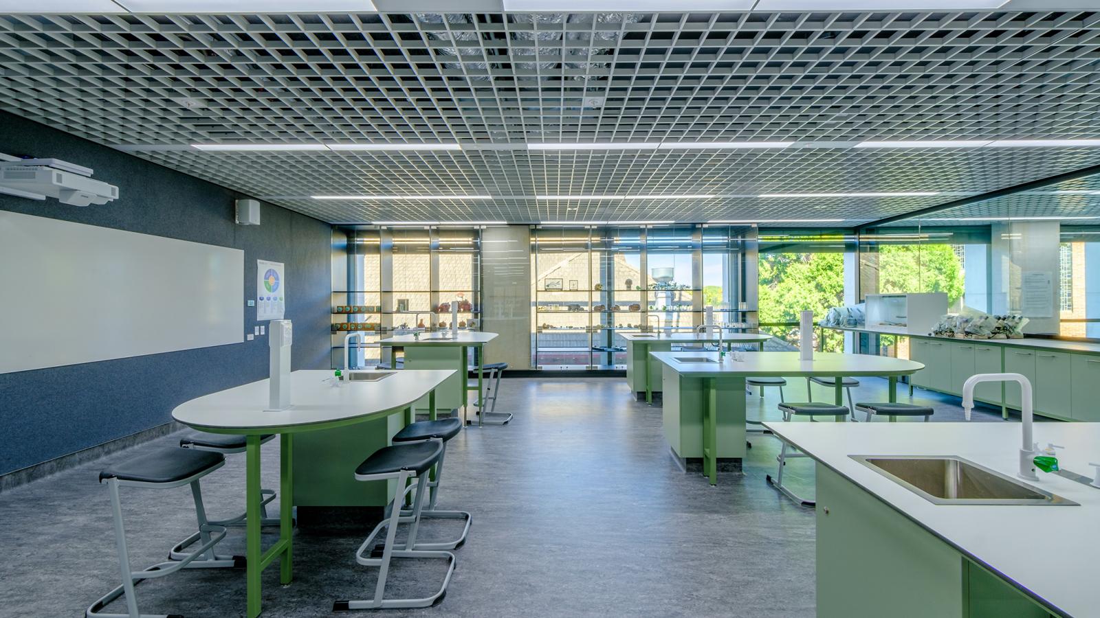 The facility also features purpose-built spaces, including multi-purpose areas for building and testing robotics and mechanical prototypes, a specialist studio for visual arts, printmaking, and digital artworks, and three general-purpose studios and laboratories for psychology, chemistry, physics, and biology. Informal breakout spaces and display areas encourage collaboration, while dedicated staff offices, storage, and lab tech spaces support the learning facilities.