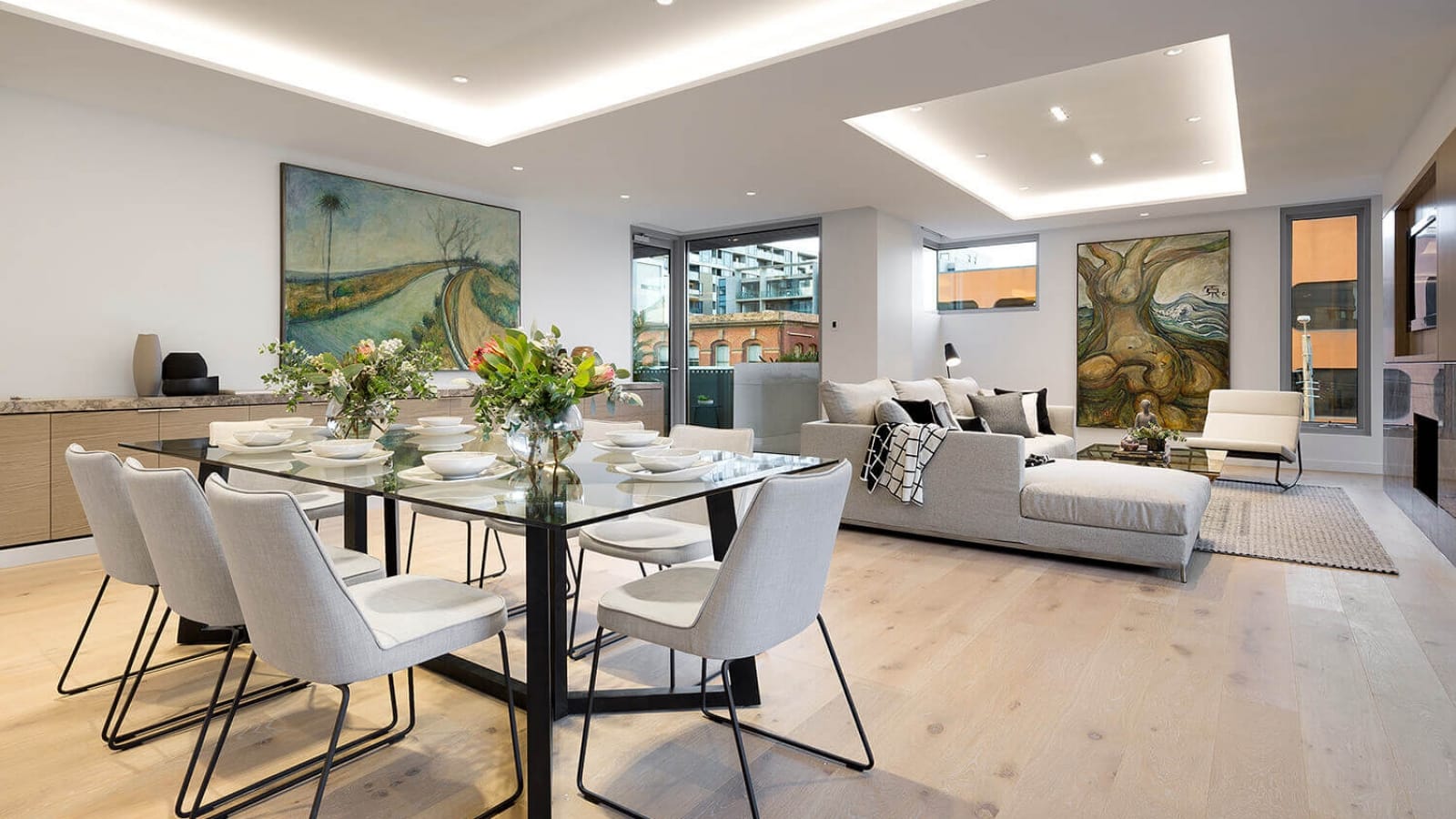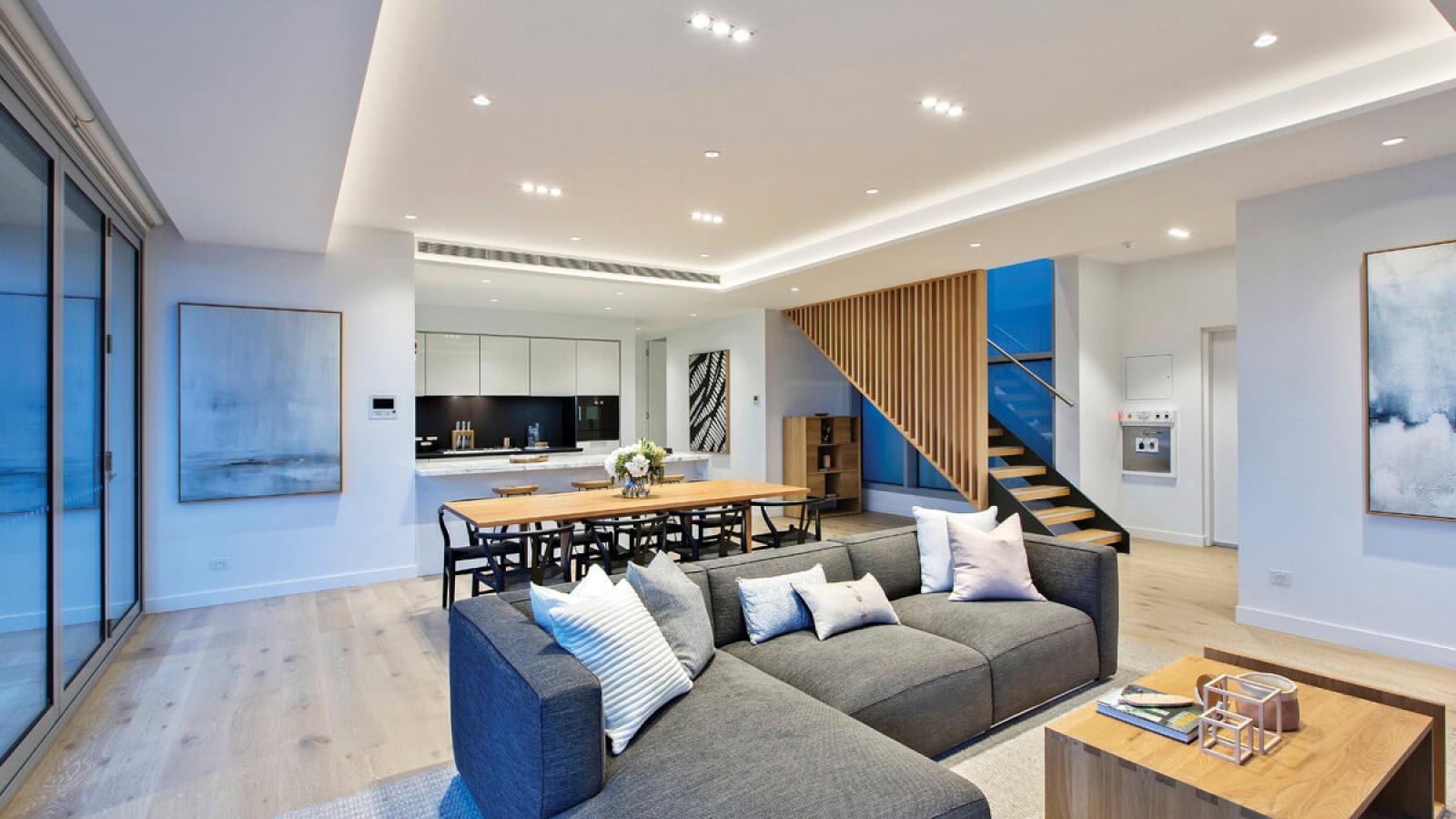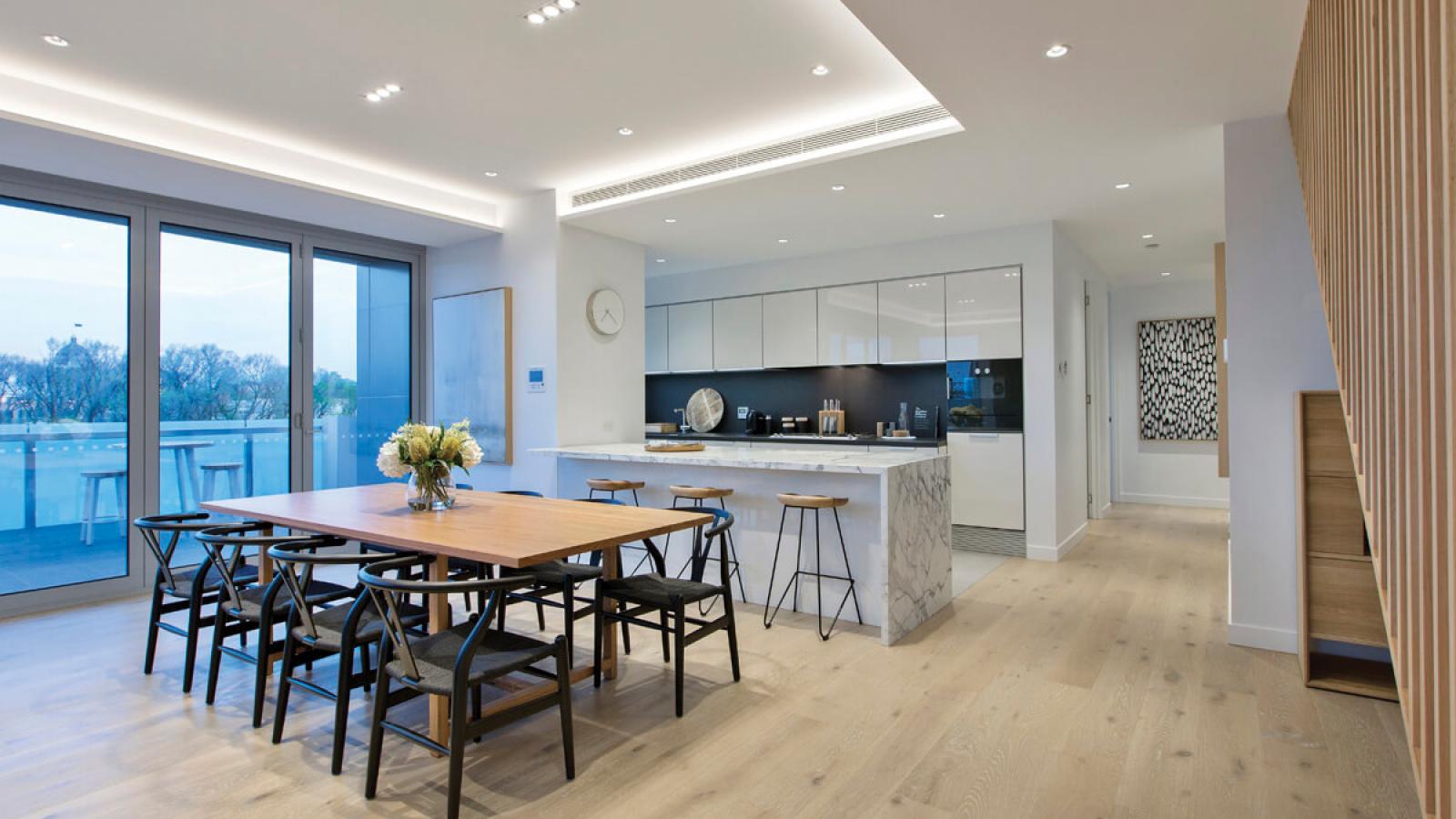 These whole-of-floor residences offer astonishing views over the grand trees and manicured lawns of Argyle Square, and out towards the lights of the city in the skyline.