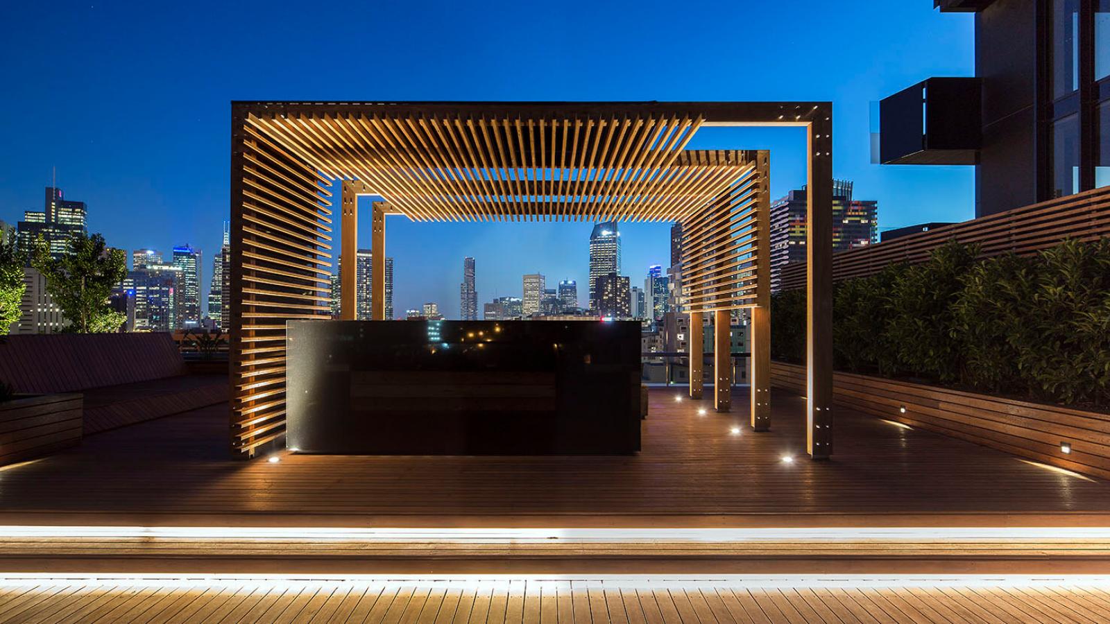 The iconic views of the City of Melbourne and surrounds are a feature on the superb rooftop garden located on Level 7 of the building. The rooftop features expansive areas of timber decking, integrated seat and water tank irrigation.