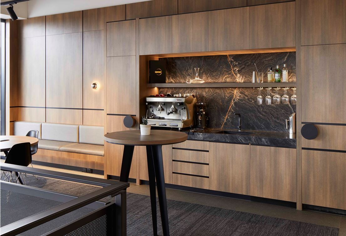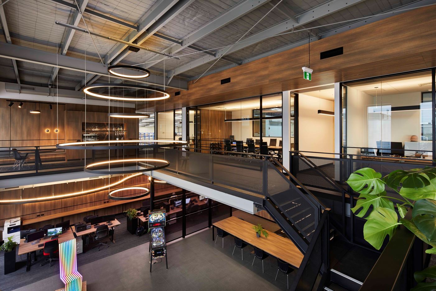With a modern industrial aesthetic, the office includes two levels with a void and high ceiling heights, exposed structure and high attention to detail on metal work and joinery. The Darkon team had a vision for the look and feel of their new home and were integral throughout the design phase, collaborating with COX Architects and Blackmilk Interior Design.