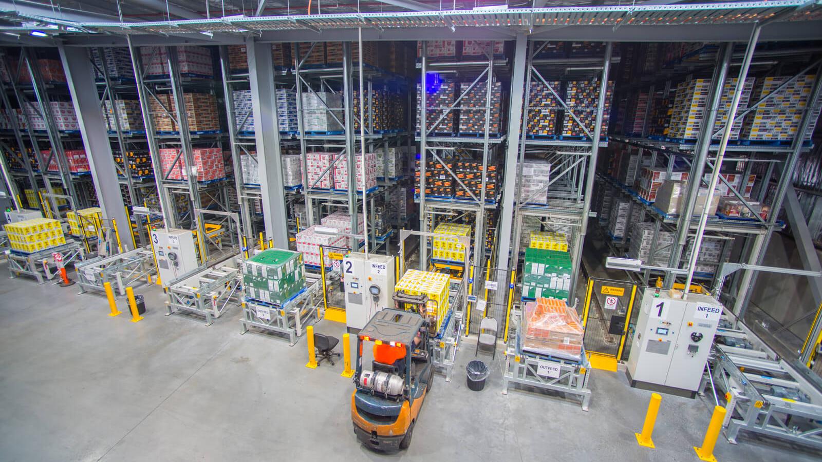 The six-aisle, double-deep, storage system provides capacity to store 26,000 pallets of Diageo’s products, more than doubling the facility’s previous capacity of 10,000 pallets.