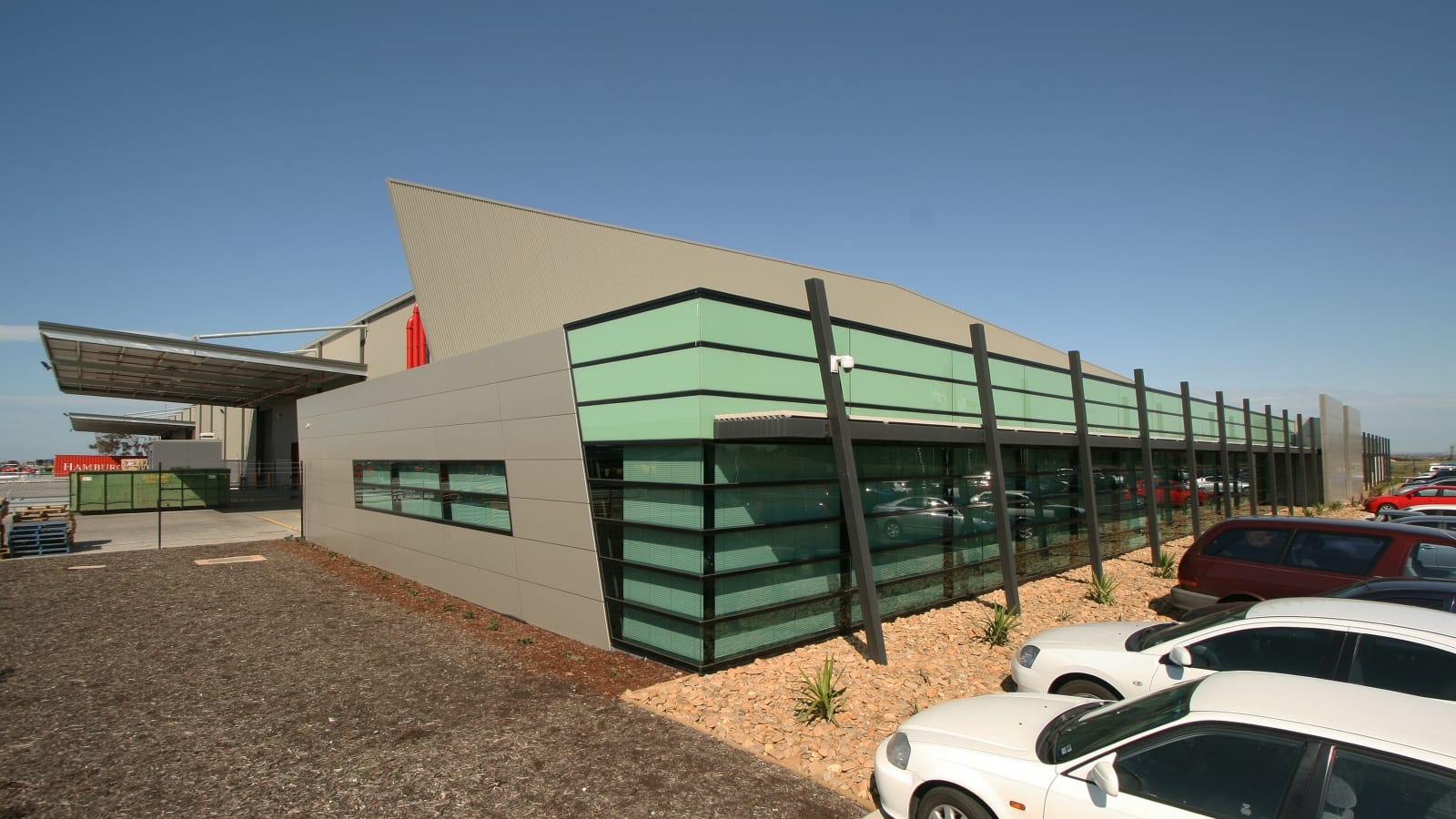 The facility, located at the Wyndham Industrial Estate has a striking appearance as a result of a fully glazed office face and feature steel work.