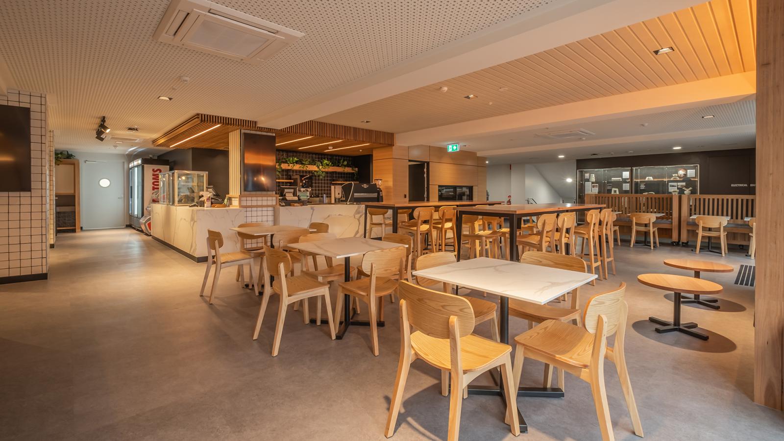 The new 380m² cafeteria is a vast upgrade to the original space, with a larger commercial kitchen, cool, dry and freezer rooms.