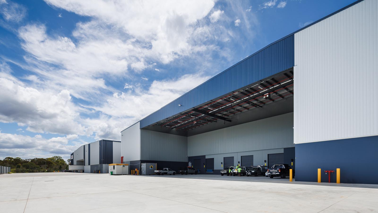 The facility includes 13,200m² of warehousing, 300m² of office space, 4,500m² of concrete handstand, 6 recessed loading docks and a super canopy that connects to the existing neighbouring facility, also built by Vaughan.