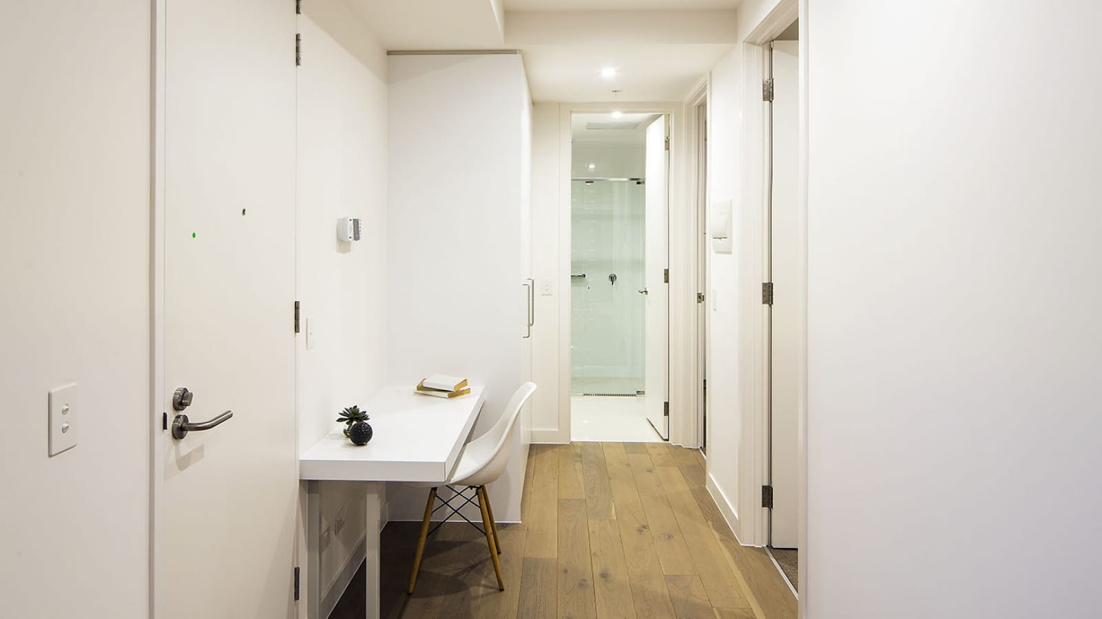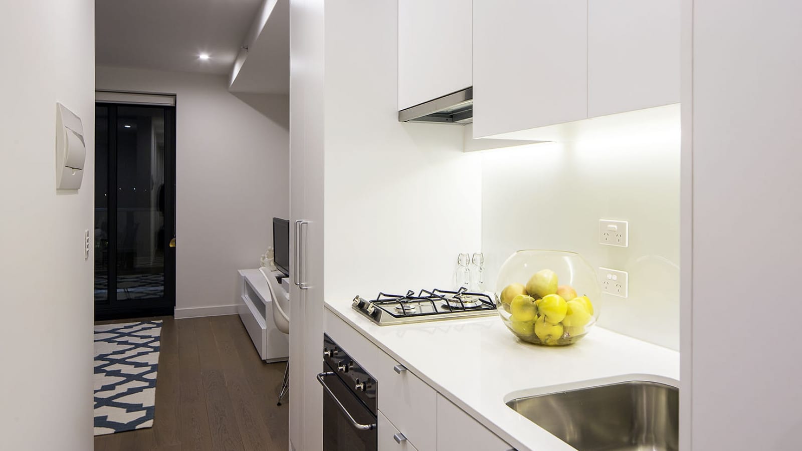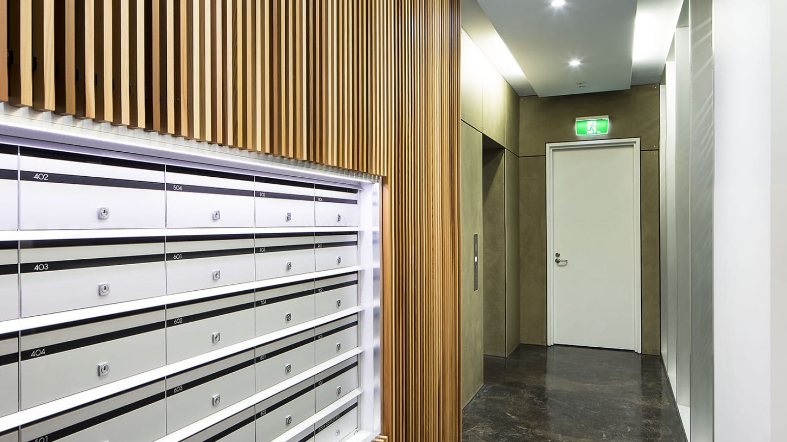 One9 is a ten storey boutique development comprising of 34 apartments, gym, roof-top terrace and a ground level tenancy. It was constructed on a small 250m² site, with a single laneway as the only point of access, amidst a high volume of pedestrian and vehicle traffic.