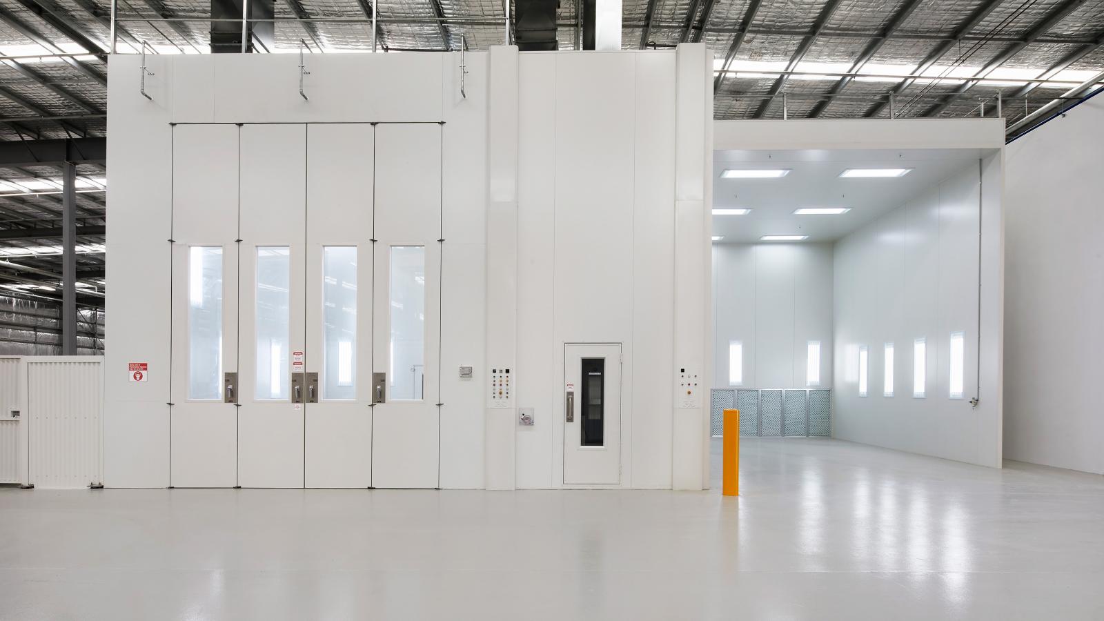 There are also specialised sealed and pressurised paint and preparation booths.
